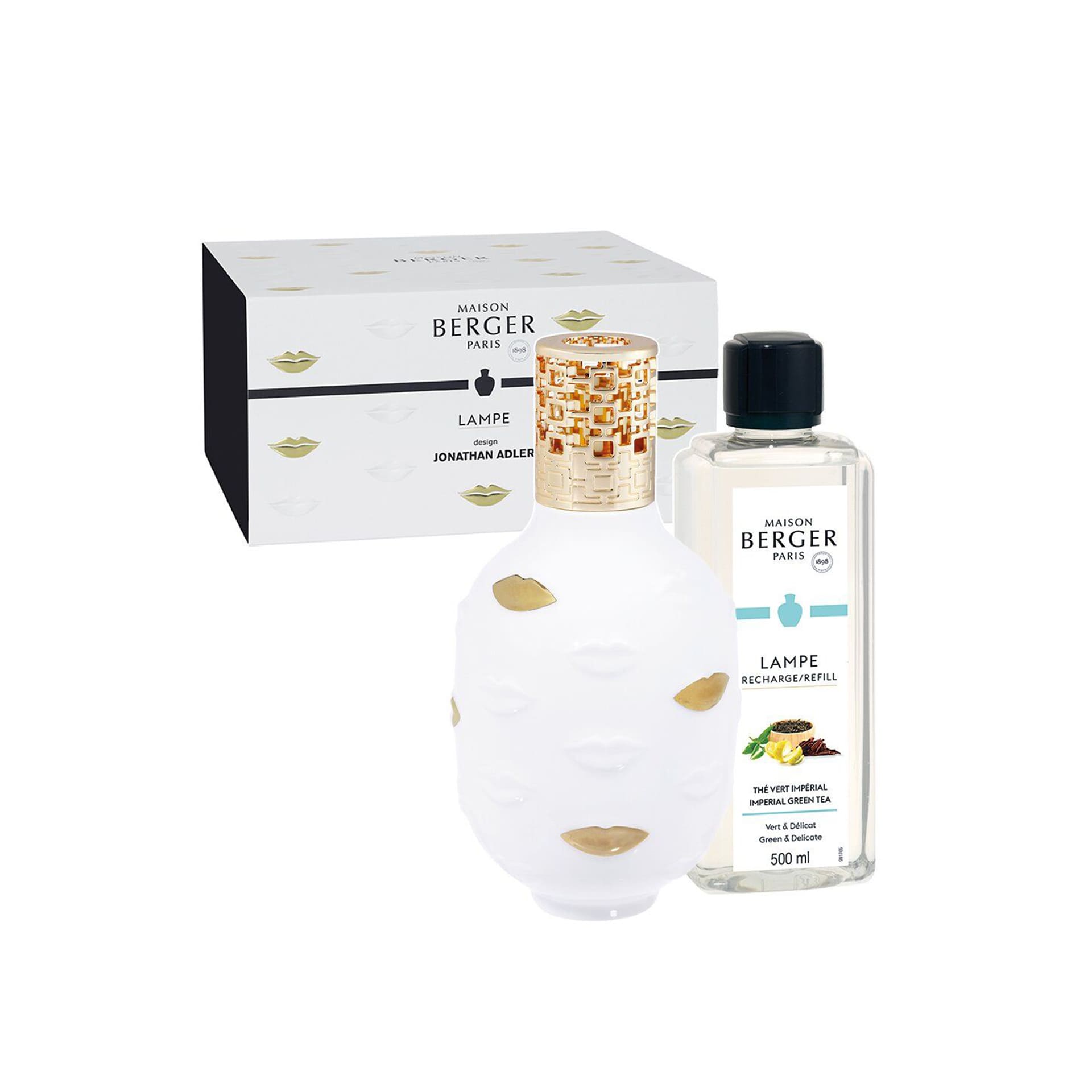 The Muse Collection continues with the iconic bestseller the Porcelain Gilded Gala Round Vase this time in the form of a Lamp Berger! Covered with white enamel and wrapped in moody mouths give your interior the kiss of cool its been waiting for. The Muse Lamp diffuser top features the signature Jonathan Adler Nixon pattern in gold. The Muse Collection is an expression of opulence!