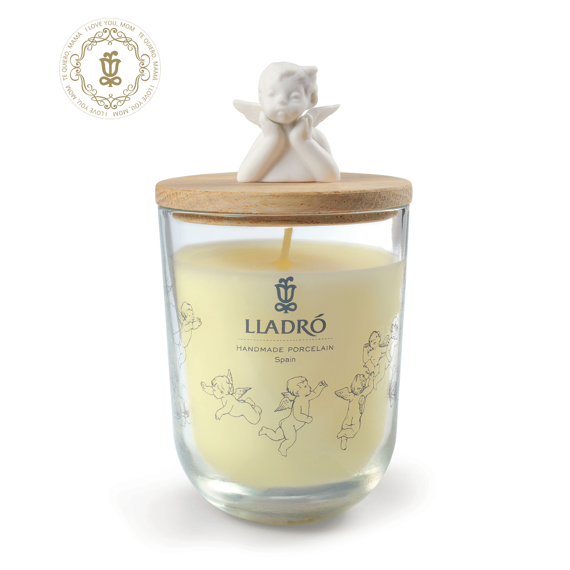 The Heavenly Dreams collection combines exclusive aromas of Mediterranean air with a differentiated presence based on noble and natural elements with very decorative organic forms. The natural oak wood lid is crowned by an angel made of Matte white porcelain. The container is made of glass decorated with delicate drawings of cherubs and flowers, classic themes of Lladró. I love you, mom, its a home scent with notes of honey and chocolate. Its key ingredients are red fruits, white flowers, honey and chocolate. It transports us home, along with our loved ones.