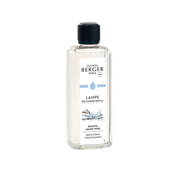 Aquatic Wood lamp fragrance 500 ml. The Water Wood Home Fragrance offers luminous freshness composed of citrus fruits enhanced by sea spray. At the heart, aquatic notes mix with the subtlety of driftwood before immersing us in coral reefs, revealing fruity notes. At the base, vetiver is enveloped in the sweetness of musks and white sand.
