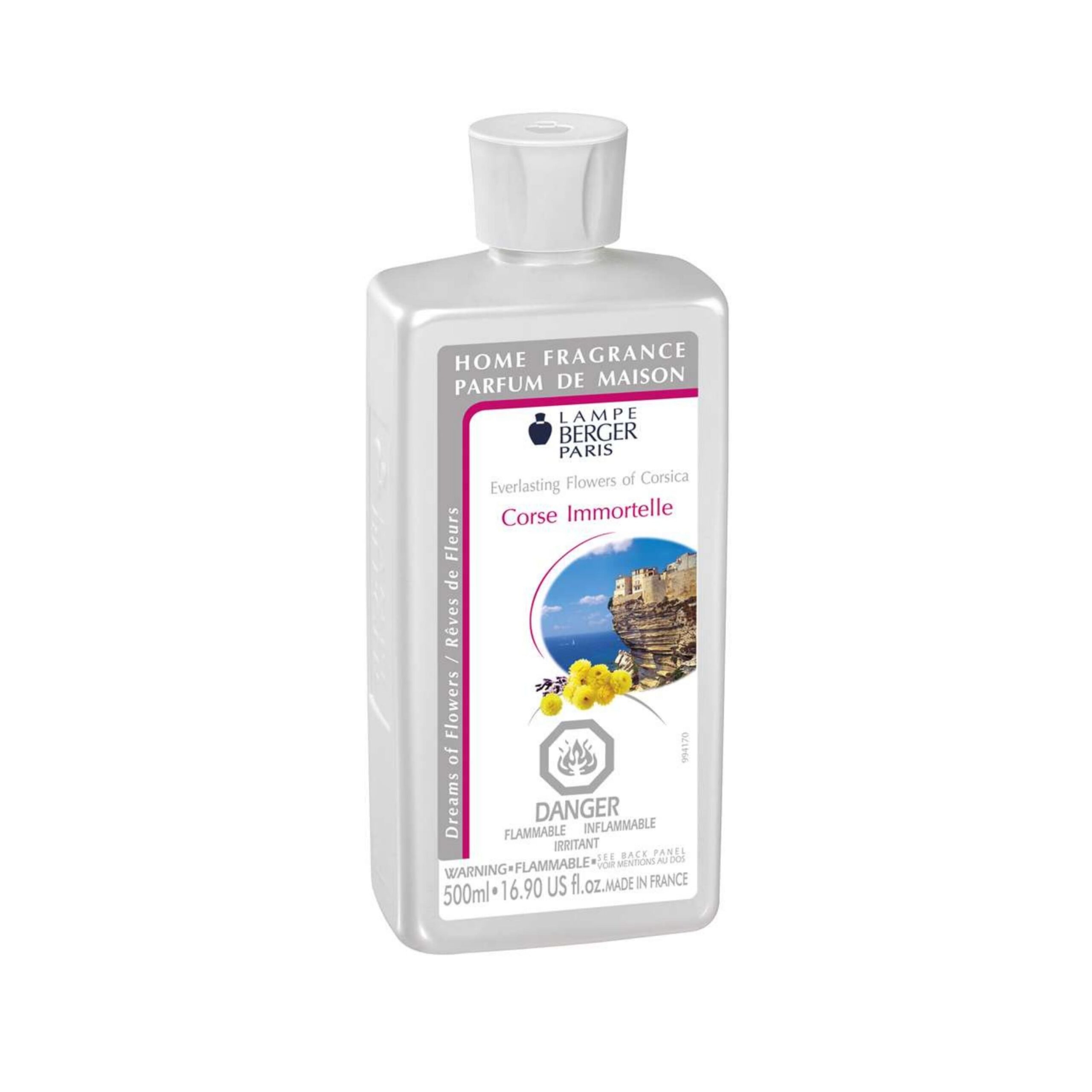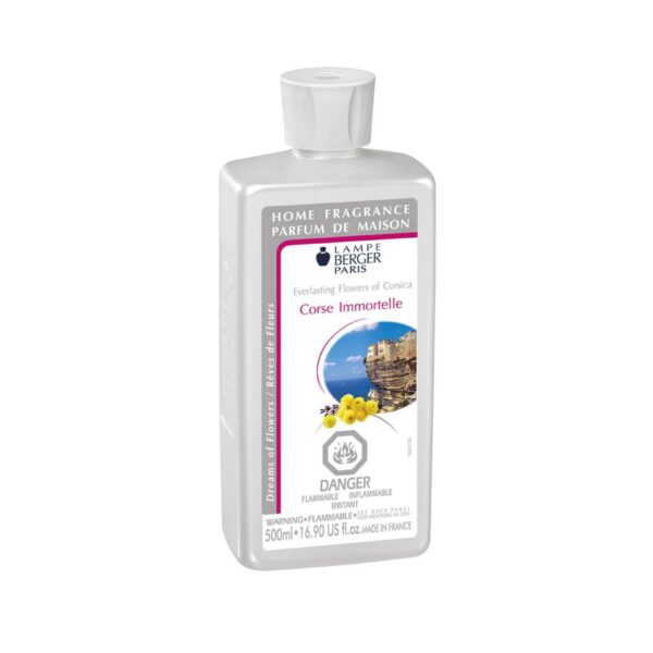 Everlasting flowers of Corsica Maison Berger Paris Refill 500 ml. The Lampe Berger Everlasting Flowers of Corsica Fragrance has a floral, aromatic and Mediterranean scent. The Everlasting Flower grows wild in the hills of Corsica, and is also known as “Gold Sun” from its multitude of yellow blossoms.