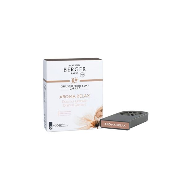 The Aroma Relax Capsule Night Day Diffuser is enriched with patchouli and guaiac wood essential oils, which have aromachological properties that promote relaxation. This fragrance can either be diffused in the evening before going to sleep or in the morning, to start the day on the right foot, with the Night Day diffuser. The spicy floral notes of rose, star anise and vanilla in this fragrance composition make it a warm and comforting scent. Already ready to use, this capsule will be your new wellness ally.