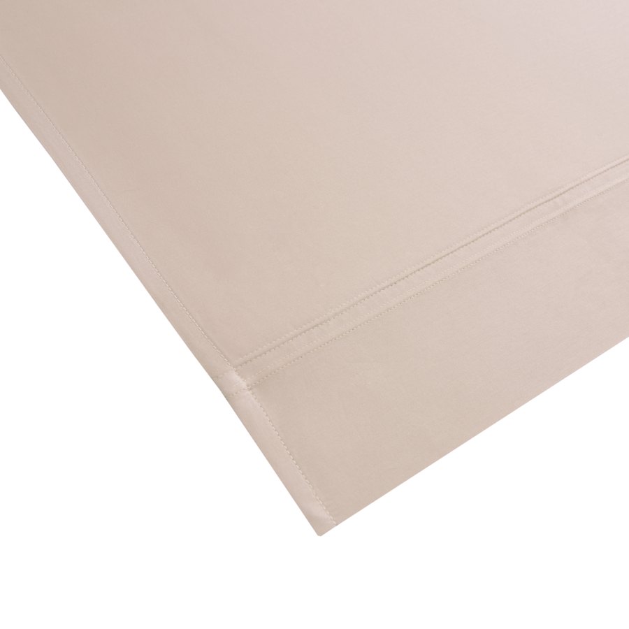 Solid color range, 100 long staple combed organic cotton sateen, 300 thread count. Double saddle stitch finish.
