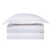 Solid color range, 100 long staple combed organic cotton sateen, 300 thread count. Flange finish with contrasting bourdon stitch.