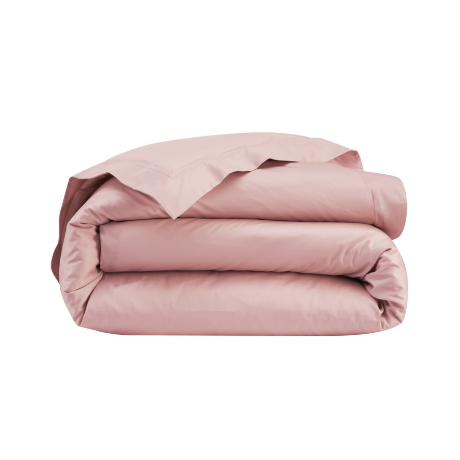 Solid color range, 100 long staple combed organic cotton sateen, 300 thread count. Double saddle stitch finish. duvet cover with flap button closure for USA.