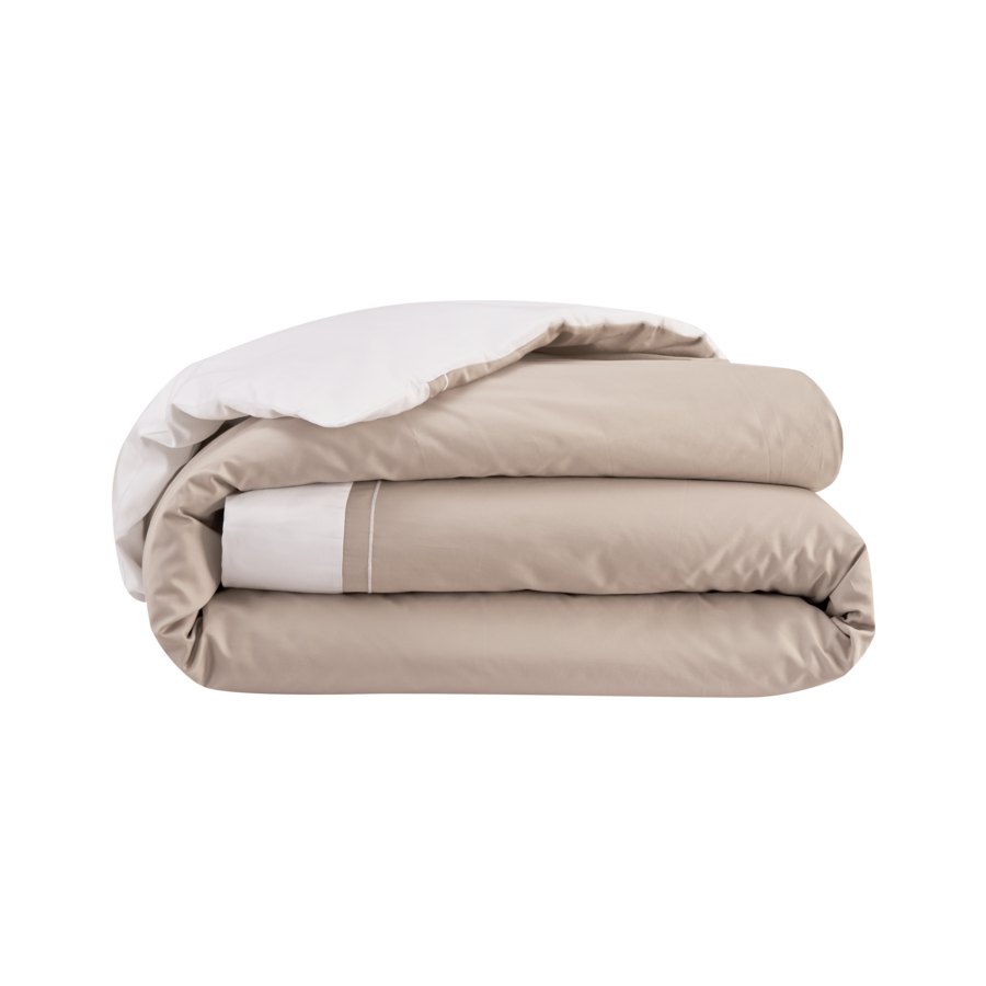 of a clean bourdon stitch framing the shams and duvet covers.