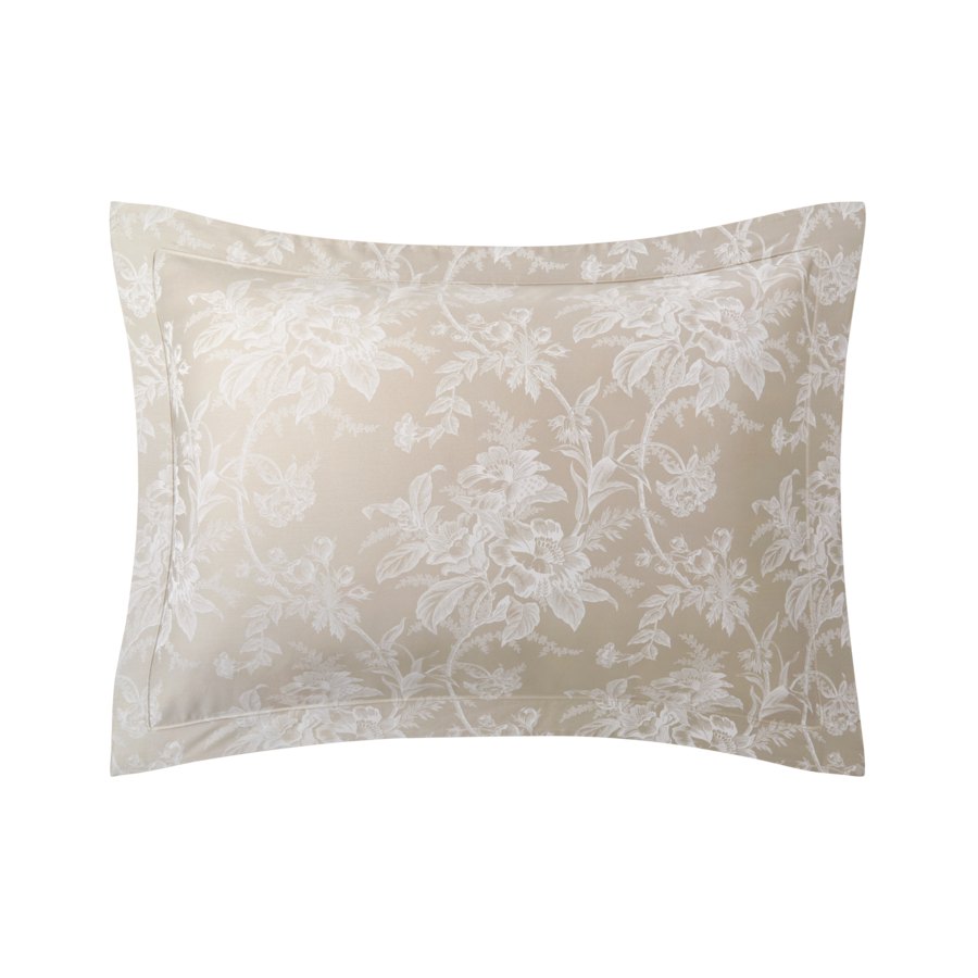 Bed linens, printed on 100 long staple combed organic, cotton sateen, 300 thread count. Saddle stitch finish, 50 x 75 cm. Made in France.