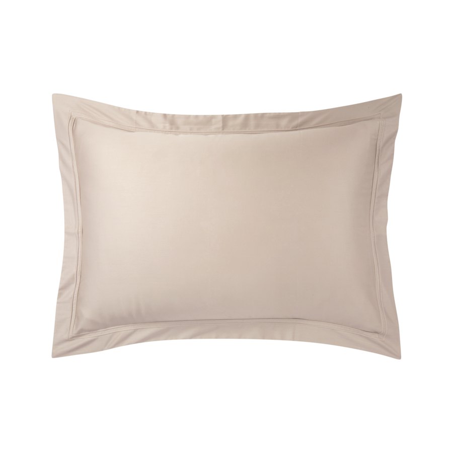 Solid color range, 100 long staple combed organic cotton sateen, 300 thread count. Double saddle stitch finish.