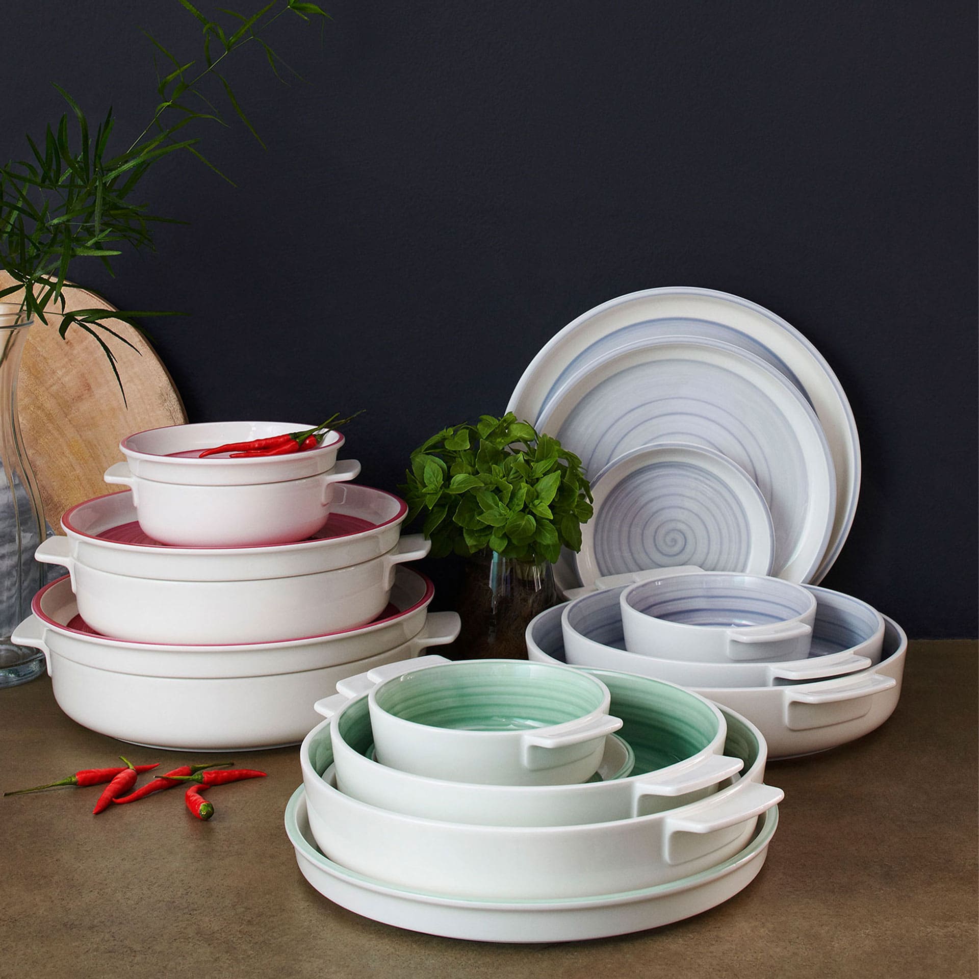 Clever Cooking is a practical collection for passionate amateur chefs who enjoy treating their family and friends to good food. The highly crafted dishes make preparing, baking and serving food sheer pleasure. The multifunctional is perfect for preparing cakes and small casseroles and can also be used for baking, serving and storing. Stackable to save space, easy to hold and easy to clean thanks to the high-quality glaze. Any remaining traces of food come away almost on their own. Treat yourself to the clever kitchen helper from Villeroy Boch.