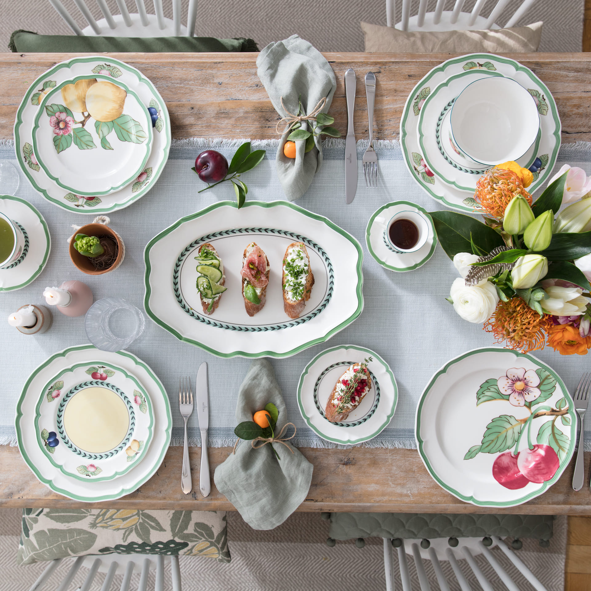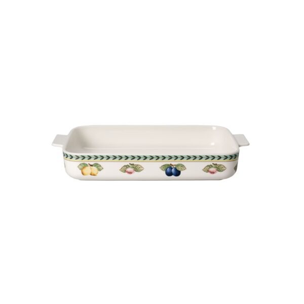 Practical oven-proof baking dish for many purposes. French Garden creates a magnificent orchard on the table with traditional country house elements in warm colours. Its timeless beauty allows the different summer decors to be mixed and matched with each other. The multifunctional baking dish is perfect for preparing cakes and casseroles as well as for storing and serving food. A special glaze makes the baking dish very easy to clean. Any remaining traces of food come away almost on their own. Treat yourself to the clever kitchen helper.