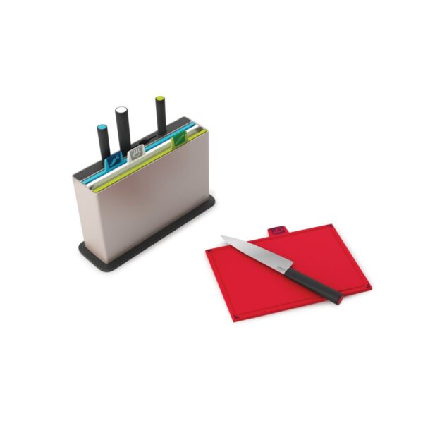 – Set of 4 colour-coded knives and non-slip chopping boards, plus a storage case