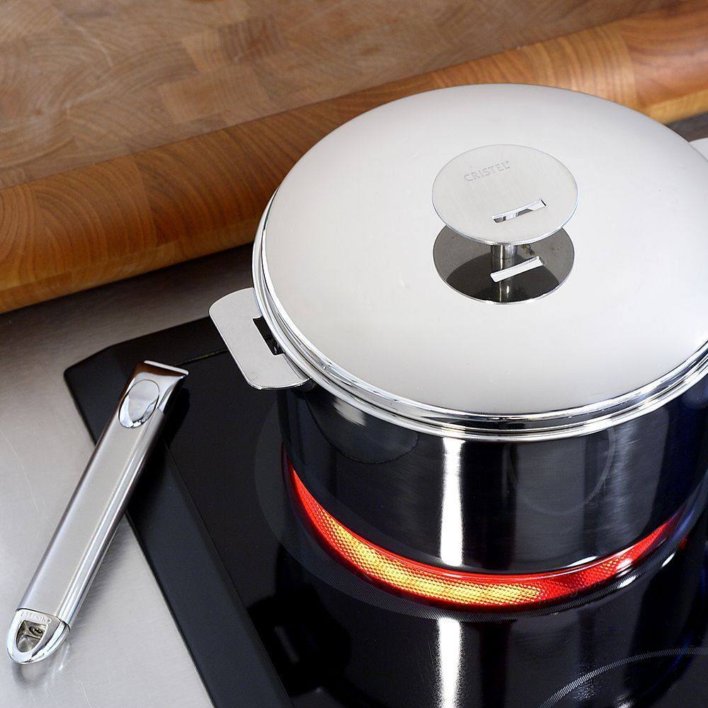 With a layer of aluminium sandwiched between two layers of stainless steel, Casteline frying pans allow heat to spread throughout their body, not only in the heat-diffusing base.