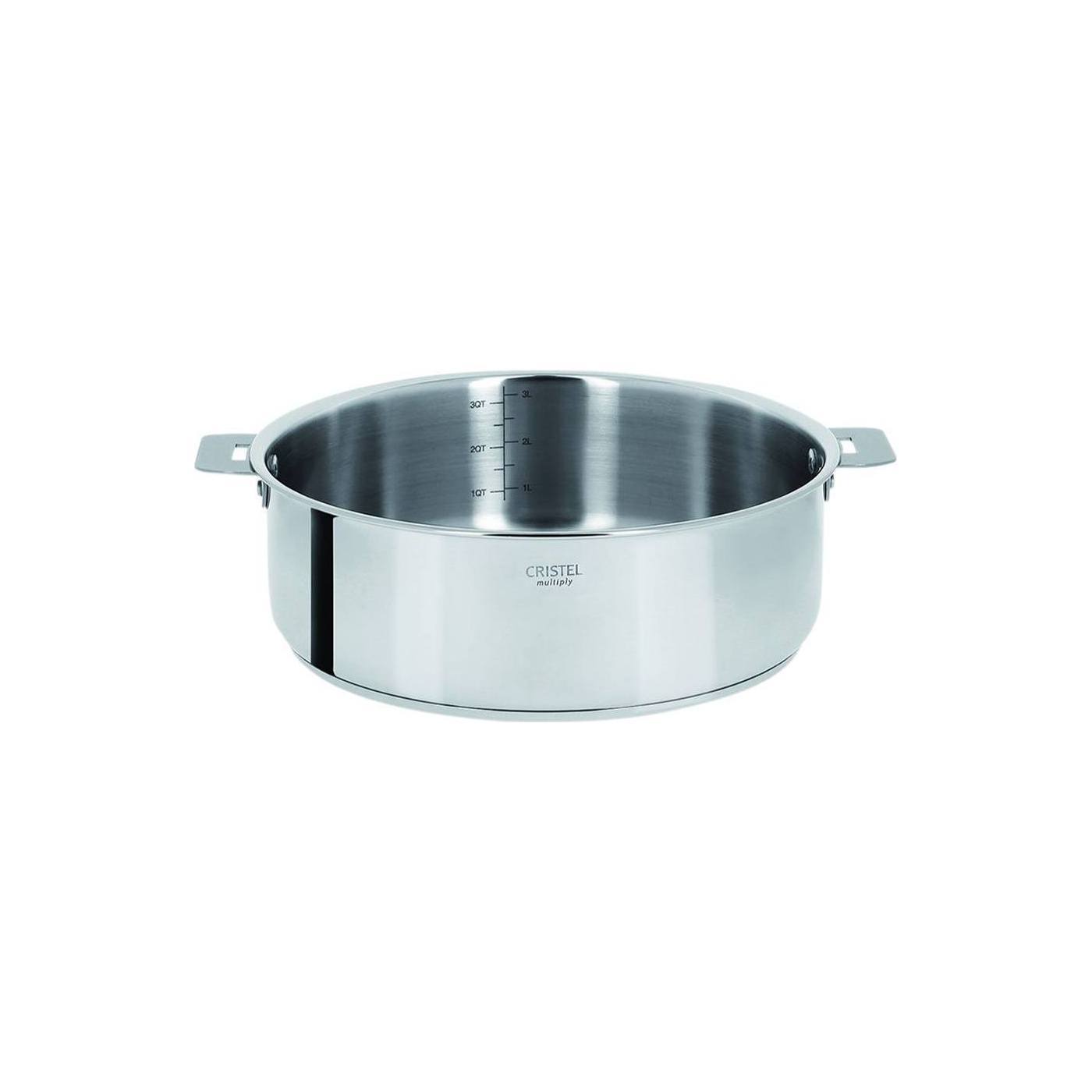 Mirror finish stainless saut? pan, made with triple-layer Multiply stainless steel / aluminium / stainless steel, and a removable handle from the Removable Casteline collection.