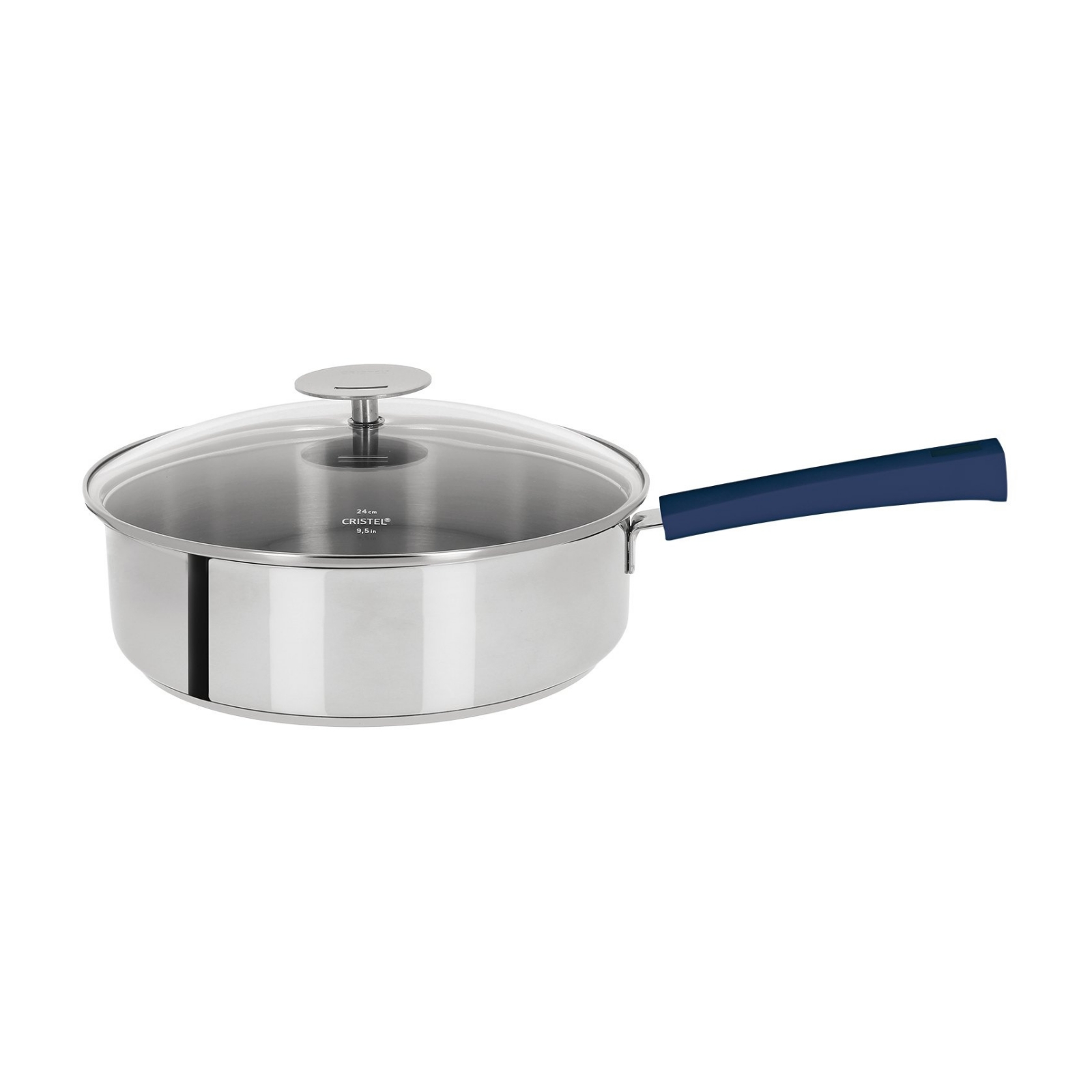 Sauté Pan 26 cm mutine fixed exceliss blue ink bakelite handle + glass lid Cristel S26MEBE.