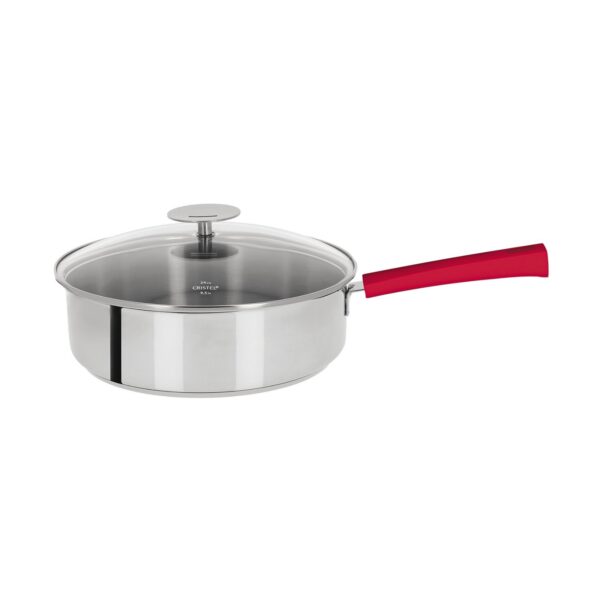 Sauté Pan 26 cm mutine fixed exceliss raspberry bakelite handle + glass lid Cristel S26MFE.