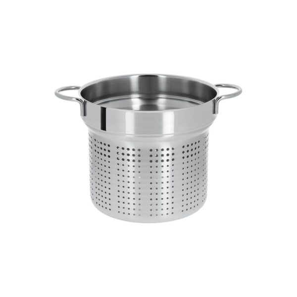 Fixed Mutine pasta cooking insert made of polished 18/10 stainless steel, with stainless rod grips.