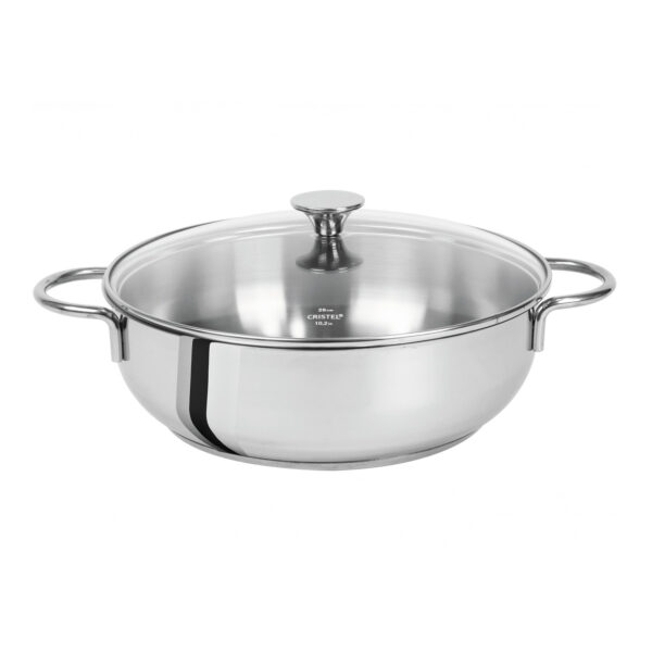 Stainless steel Sauté Pan 2 grips fixed handle 24cm + glass lid Master Fixe Cristel CWMS2A24.