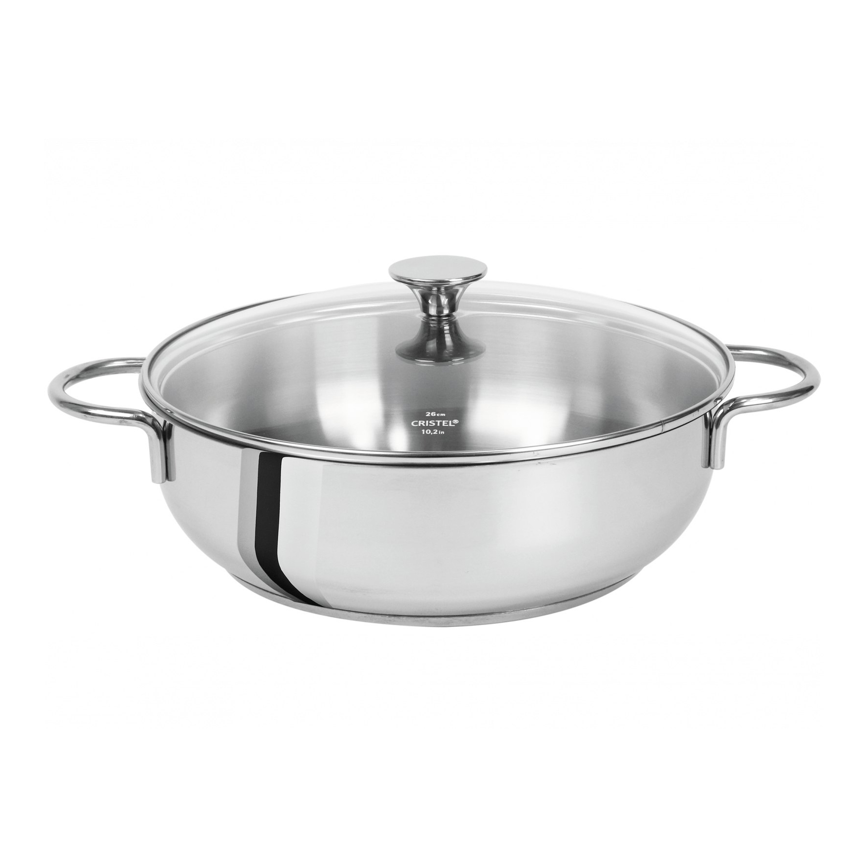 Stainless steel Sauté Pan 2 grips fixed handle 26cm + glass lid Master Fixe Cristel CWMS2A26.