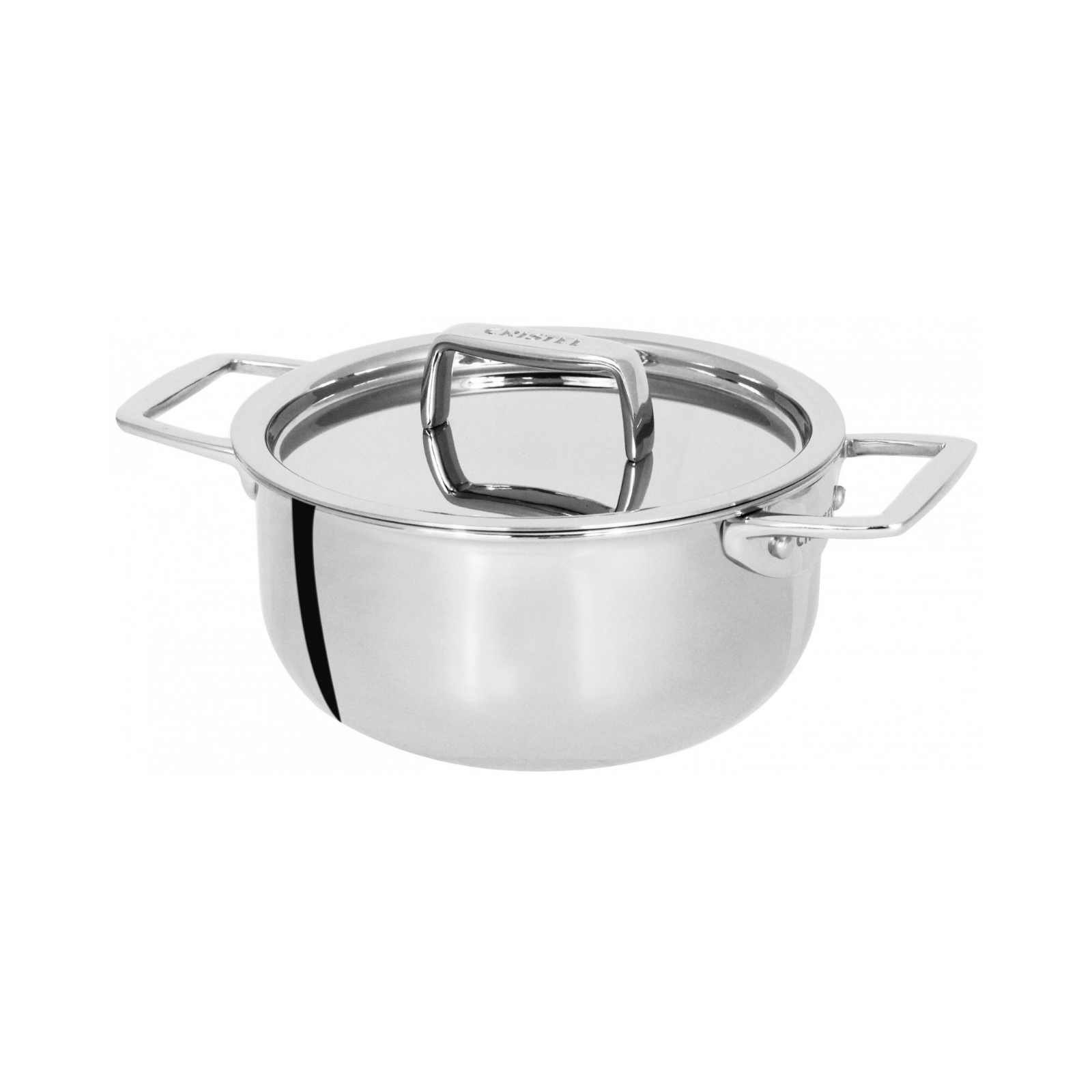 Mini Stainless steel stewpot 3-ply Castel Pro collection with stainless steel lid, gloss mirror finish with 5-layer thermo-diffuser base, stainless steel cast iron handles.