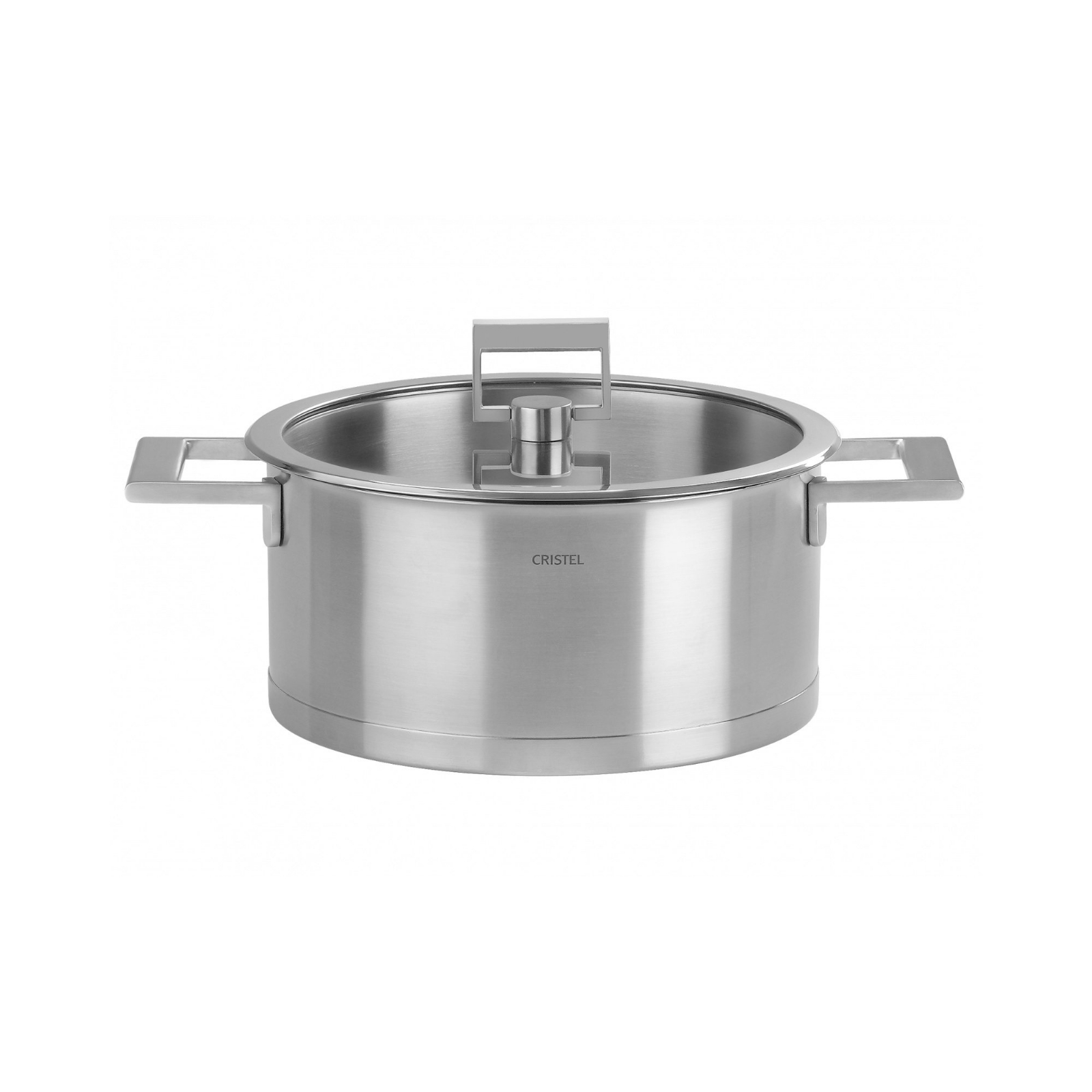 Strate fixed stewpan 24 cm + flat glass lid folding knob Cristel F24SF.