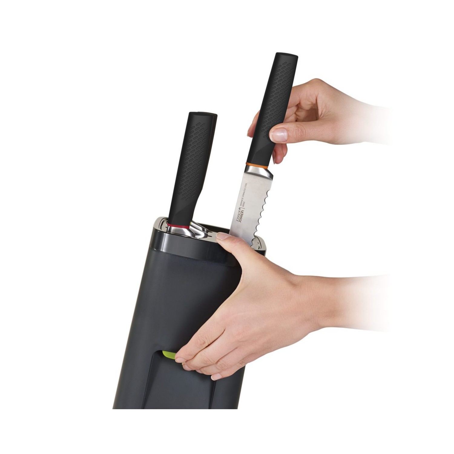 – Pulling on a knife increases the force of the grip so knives cannot be simply forced out of the block