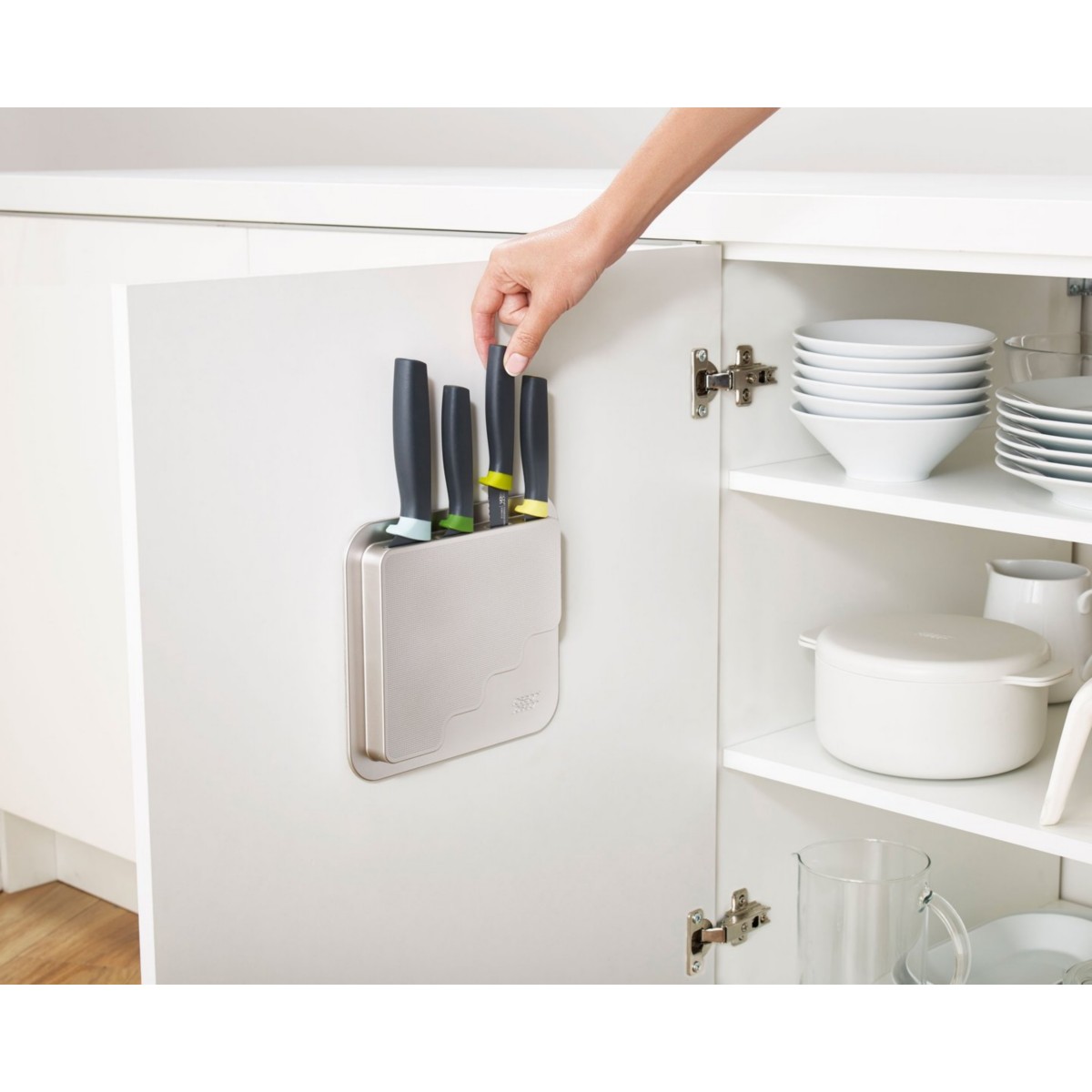 This innovative set of 4 Elevate™ knives comes with a slimline storage case that is ideal for storing on the inside of your cupboard door.