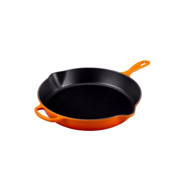 This pan is crafted from legendary cast iron, so it can be used in the oven as well as on the hob. A true kitchen staple, it has an ergonomic handle which makes it easy to move about. And it features two pouring noses, for drip-free serving. Ready to dish up? Take this piece straight to the table.