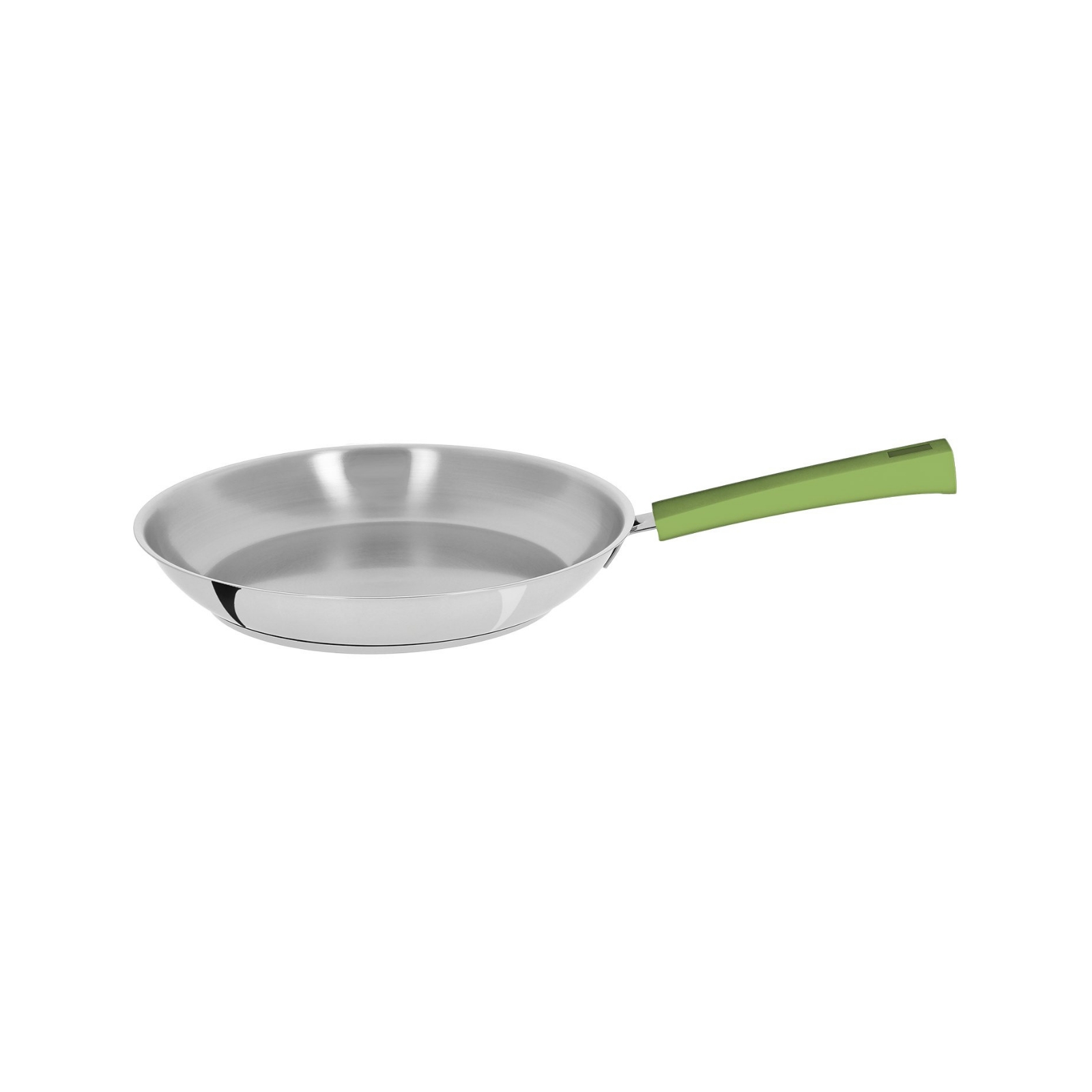 Frying pan 24 cm mutine fixed lime green bakelite handle Cristel P24MVT.