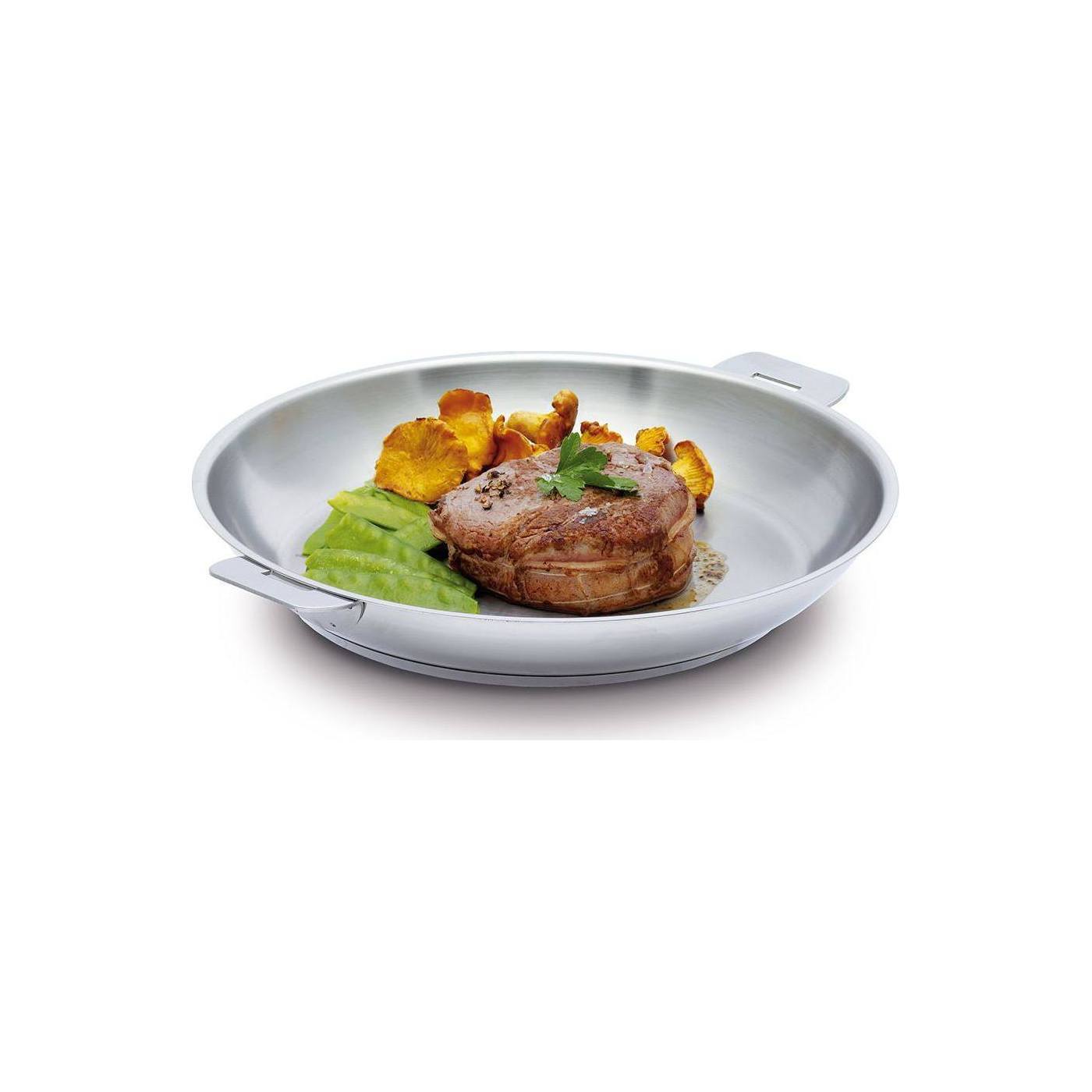 Mirror finish stainless frying pan, made with triple-layer Multiply stainless steel / aluminium / stainless steel, and a removable handle from the Removable Casteline collection.