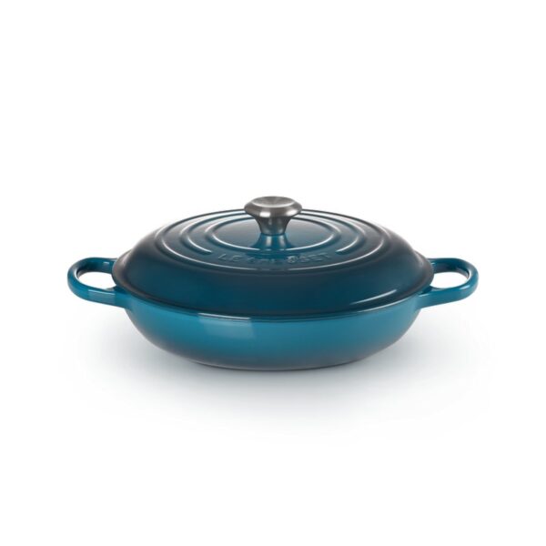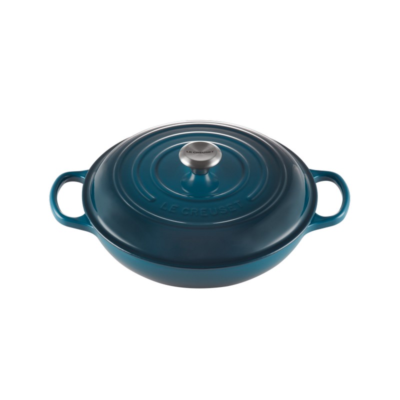 Crafted at original French foundry, these cast iron pieces are the stuff of culinary legend. This shallow casserole is no exception. The large flat shape and shallow sides make it perfect for browning meat and vegetables, simmering casseroles, stir-frying and baking. It enhances caramelisation, for moreish mouthfuls.