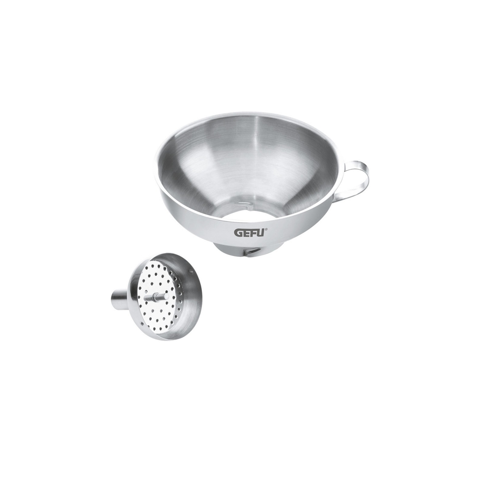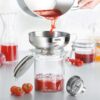 Pour your home-made jams into jars nice and cleanly using our bottling funnel. Also, thanks to the removable sieve, no pips will enter the jar with the fruity spread. The detachable reduction funnel, which is safely attached to the funnel using a bayonet catch, allows you to fill spice mills and salt shakers easily and precisely. For use with containers measuring 1.5 to 5.5 cm in diameter.