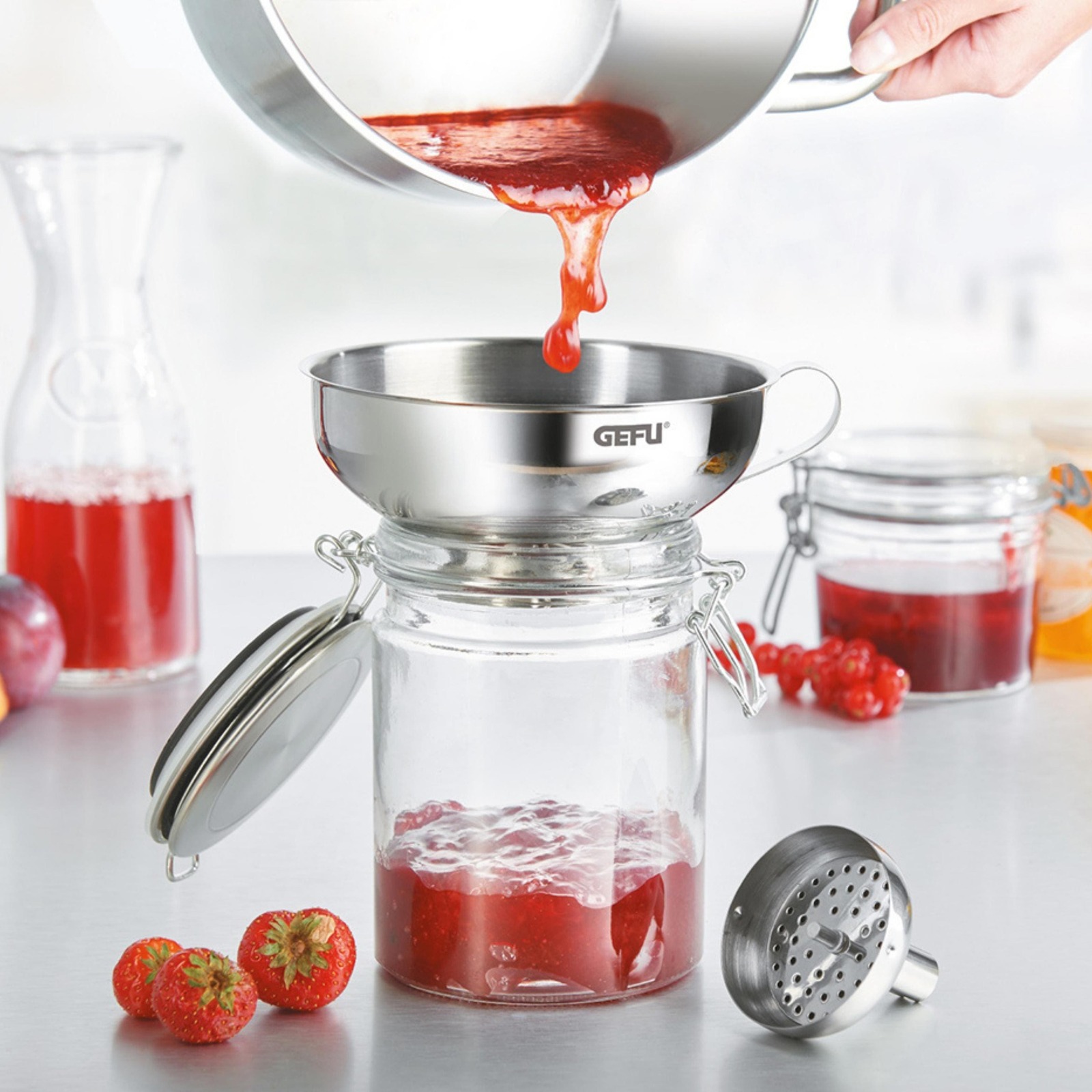 This practical bottling funnel helps to pour home-made jams into jars both easily and cleanly.