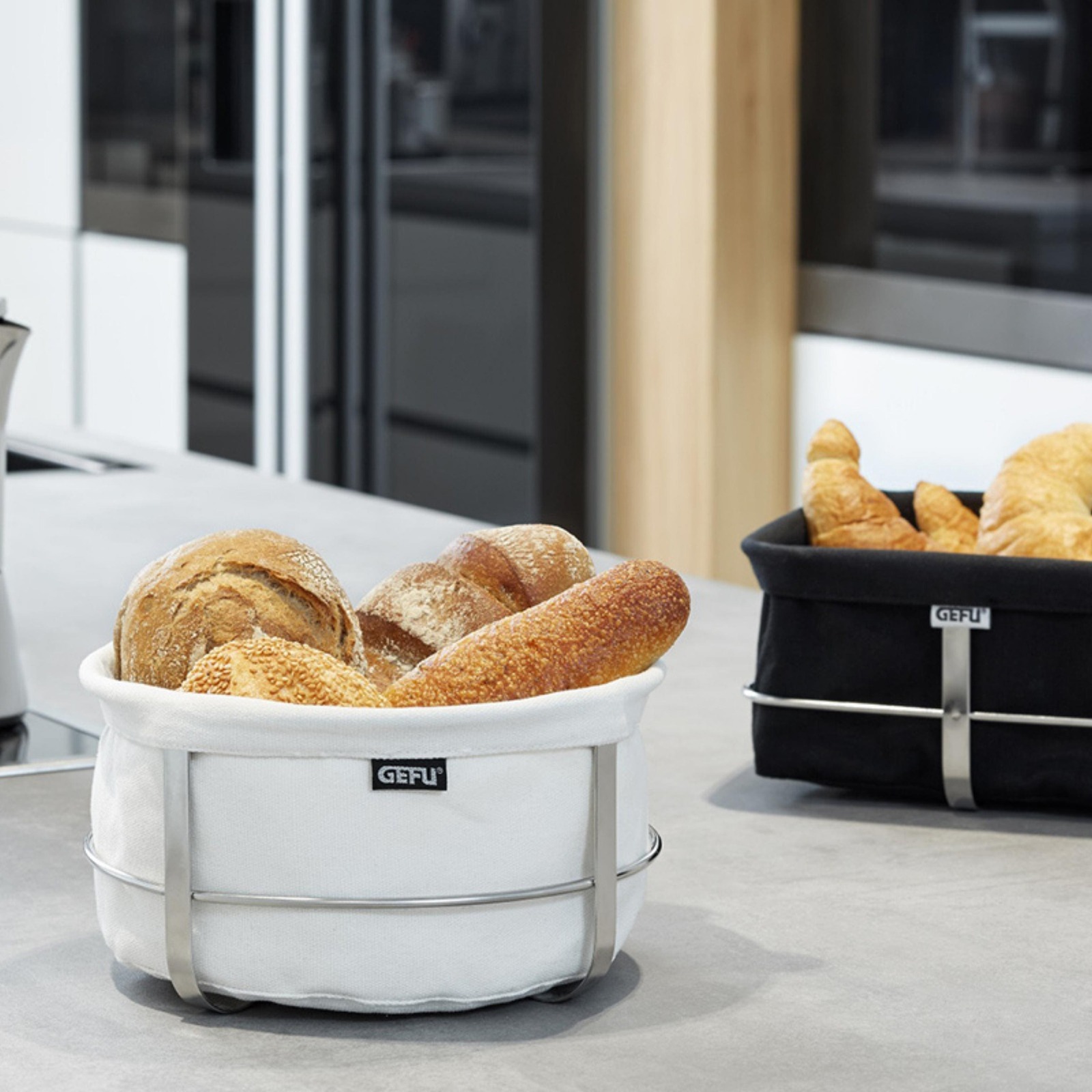 Set in a simple but stylish stainless steel rack, the black cotton inset makes a smart setting to serve bread and rolls in an appetizing way – for breakfast, Brunch or supper: presentation is half the meal!