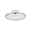 The heat-resistant glass lid matches perfectly with the cookware of its own diameter. Has a stainless steel rim and handle.