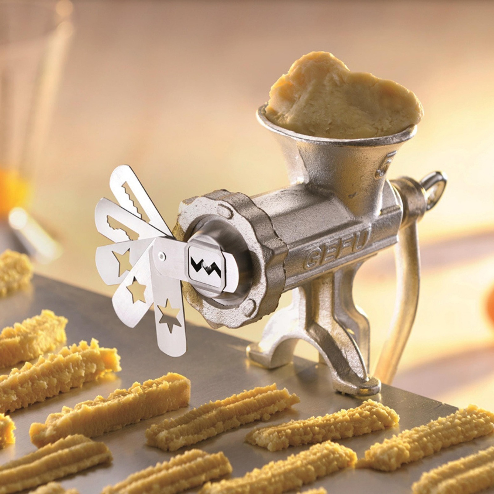 For making delicious cookies using a size 5 meat grinder or the KitchenAid machine. Just push the desired shape into the attachment and begin.