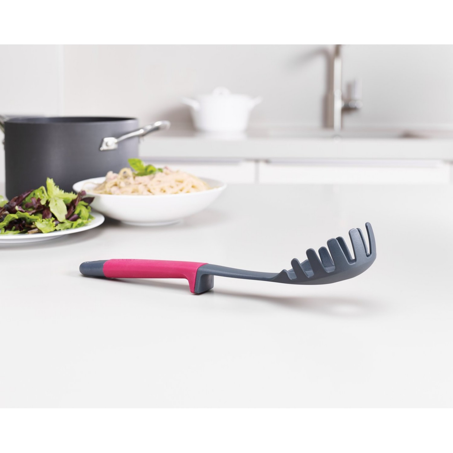 – Set includes: slotted spoon, spaghetti server, solid spoon, slotted turner, flexible turner and ladle