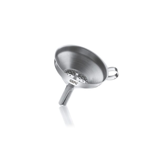 This small bottling funnel is especially useful when it comes to filling home-made juice into bottles. Not a drop will be lost, and thanks to the removable sieve neither seeds nor fruit residues will get into the bottles. Of course the handy funnel, used without the sieve, does an equally good job of filling the spice mill or the salt shaker.