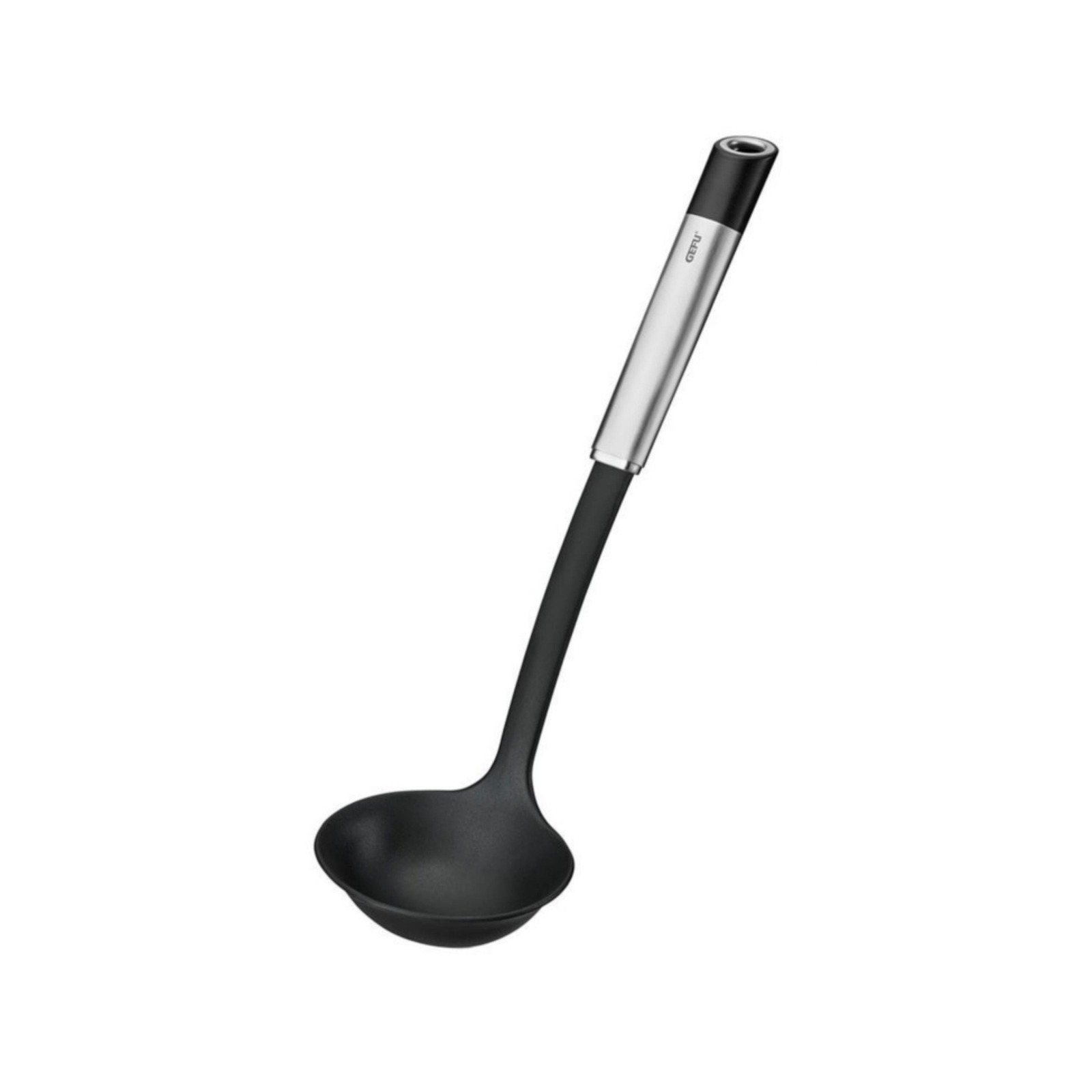 The nylon ladle dipper is ideal for coated cookware in particular and doesn’t leave any scratches in pots, pans or bowls when dishing out soups, sauces, half-liquid batters etc.