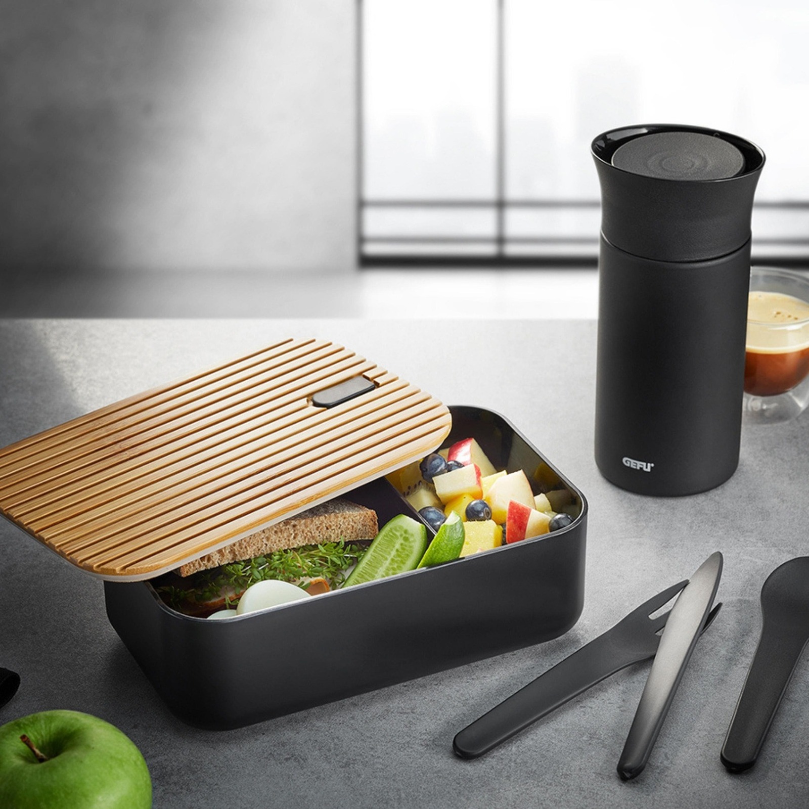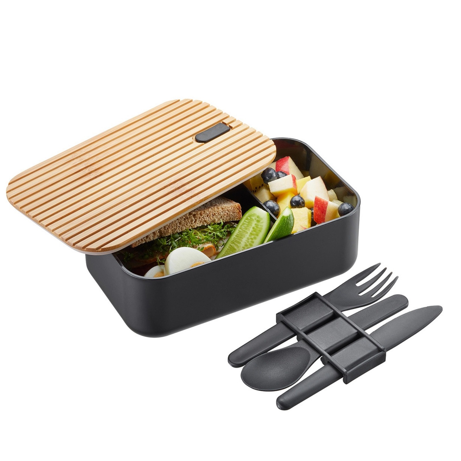 – including 3-piece cutlery set and elastic strap to attach the cutlery to the box