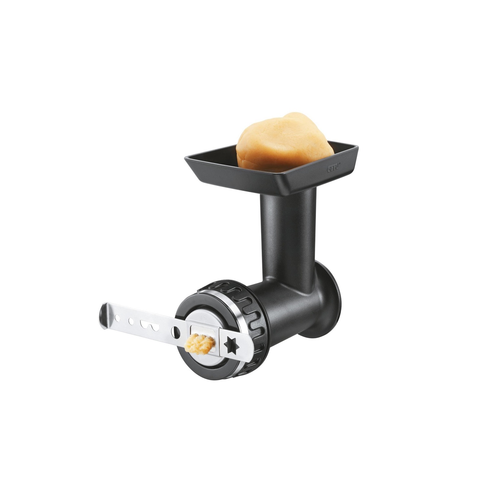 Using the multifunctional meat grinder, meat and veg is easy to grind with little effort. Sophisticated engineering, including the special design of the conveyor screw, the self-grinding knife or the interior thread ensures perfect results. The supplied sausage stuffer makes it easy to fill cannelloni as well, and the spritz biscuit attachment gives cookie dough the perfect shape.