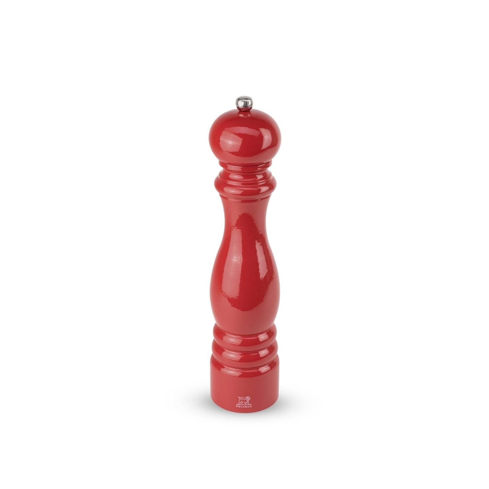 The red Paris pepper mill is an emblematic model. A symbol of Peugeot expertise with its steel mechanism and its body made of wood, turned in the East of France, it is your long-term assistant in seasoning of all your culinary creations. Its shape created more than 30 years ago transcends the years without losing any of its superb style. In a bright vivid red, it appeals to lovers of the most contemporary of colours. Its slender curves give an excellent grip. The shiny metal knob, marked with the emblem of the brand, the Peugeot lion, is the jewel perfecting the silhouette, to make it even more majestic.