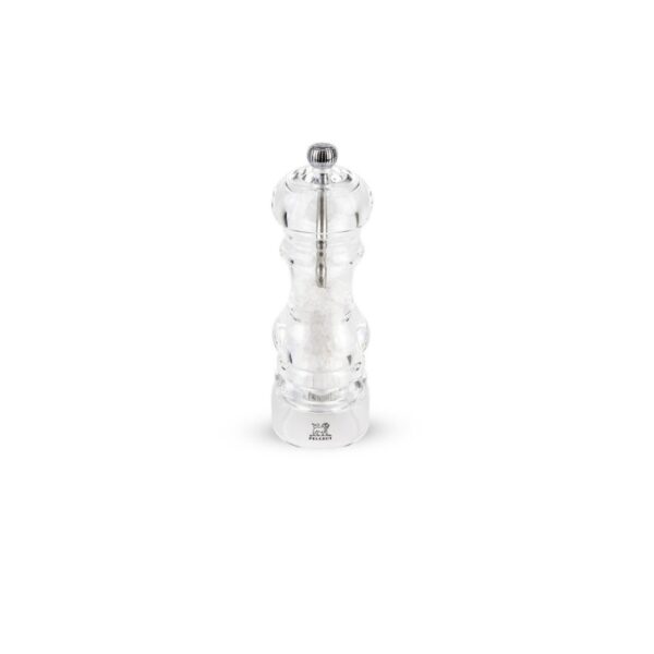 Never be surprised by a mill being suddenly empty: this is one of the many advantages of the Peugeot Nancy 22 cm salt mill. Its generous shapes blur under the visual effect of the transparency of the acrylic. Salt appears as if suspended in its showcase. The adjustment knob at the top of the mill makes it easier to control the coarseness, from the finest to the coarsest. In the kitchen, it has become the perfect instrument for lovers of flavour.