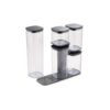 This smart storage container set features a clever stand that allows easy access to any jar, regardless of its position.