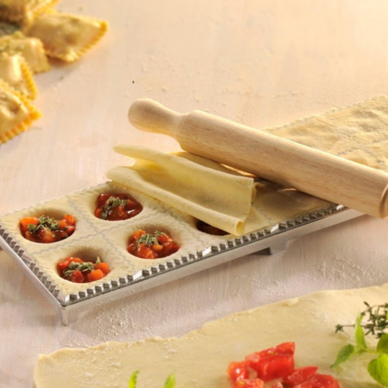 To prepare larger quantities of Ravioli and pasta-case.