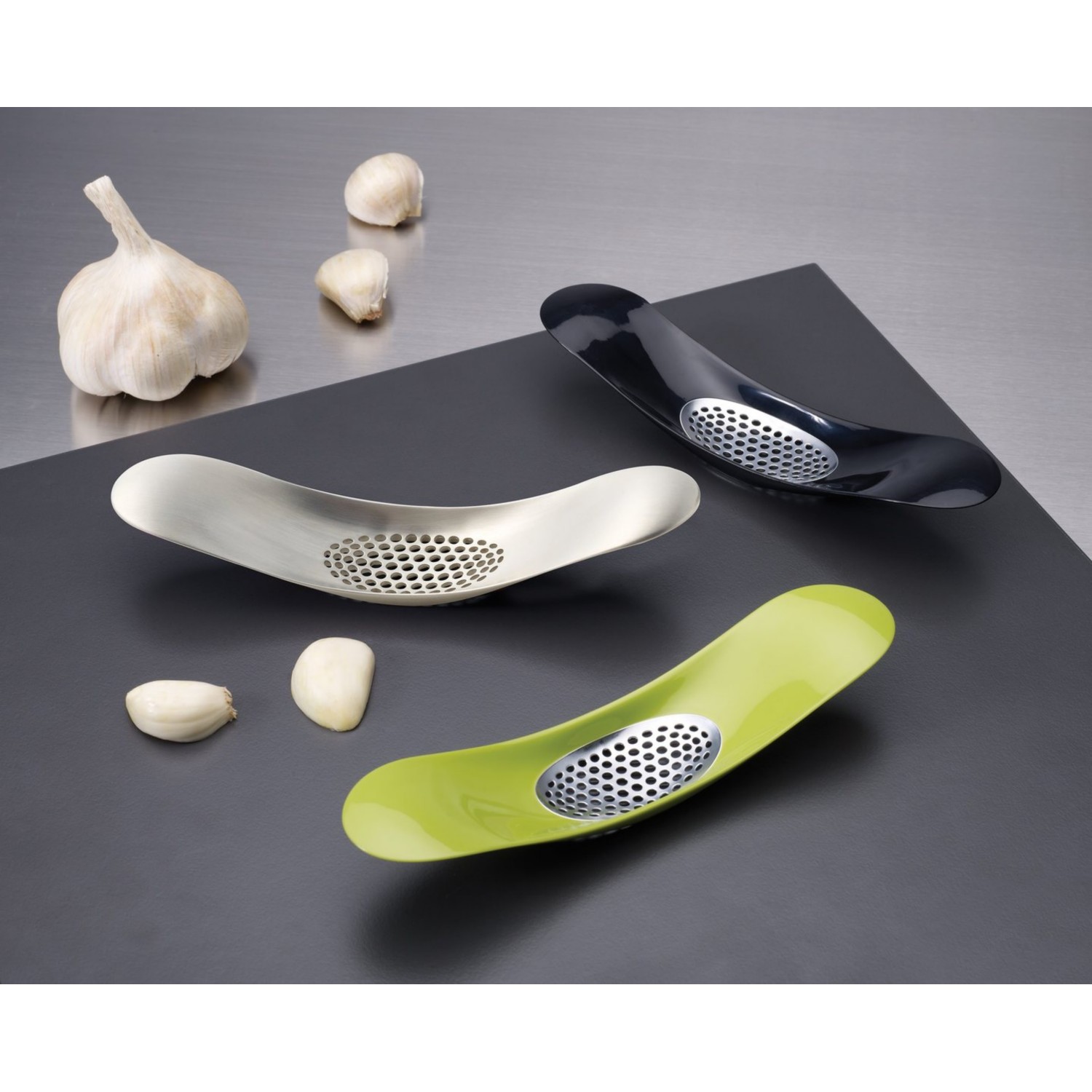 By using downward pressure and a ‘rocking’ motion, this stylish tool crushes garlic cloves quickly and easily without leaving any garlic odour on your hands.